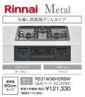 ※ハウジーノで工事される方専用商品 商品だけの販売は行っておりません リンナイ製ガスコンロ メタル 幅60cm ホーロートップ(温度調節機能あり・水無し両面焼) RS31W36H2RBW