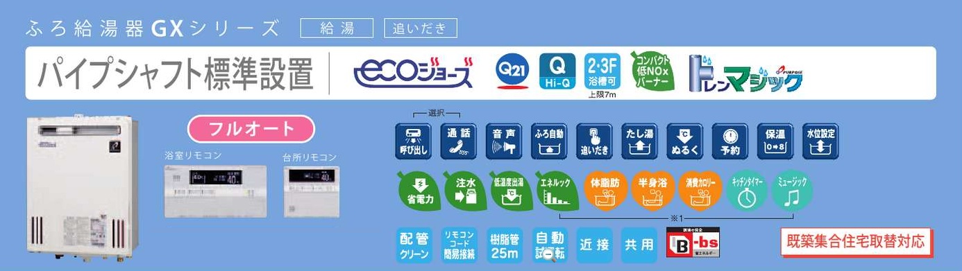 パーパス ガス給湯器 エコジョーズ/フルオート PS標準設置16号(ドレンマジック) GX-SD1600ZW-1 リモコン別売