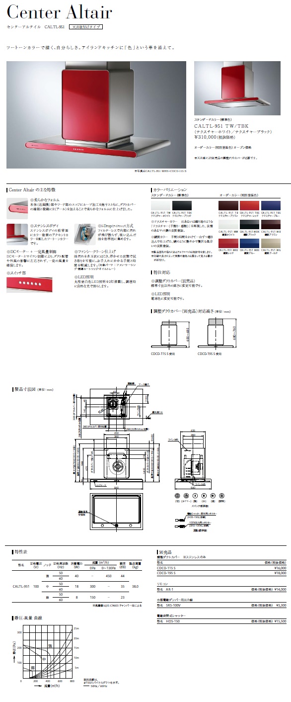 ARIAFINA(アリアフィーナ) レンジフード Center Altair(センターアルタイル) CALTL-951 MB(鏡面ブラウン)