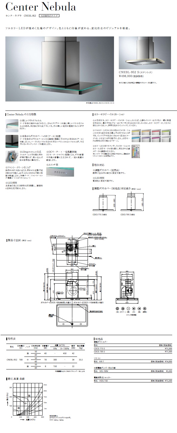 ARIAFINA(アリアフィーナ) レンジフード Center Nebla(センターネブラ) CNEBL-952 S