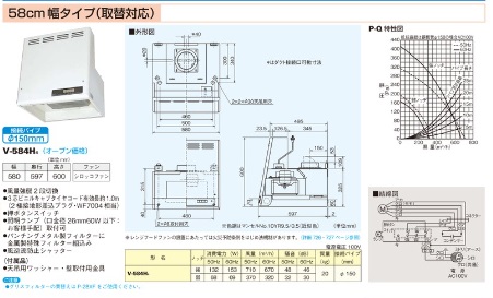 幅58cm全高60cm 取替対応 三菱 レンジフード V-584H4
